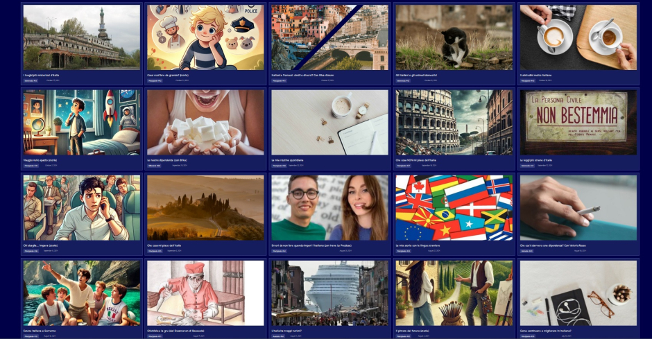 Davide's podcasts zijn gericht op 3 livelli: Principo, Intermedio of Avanzato. Op zijn website vind je ook bijbehorende teksten met aandacht voor vocabulaire. Kijk op https://Podcastitaliano.com